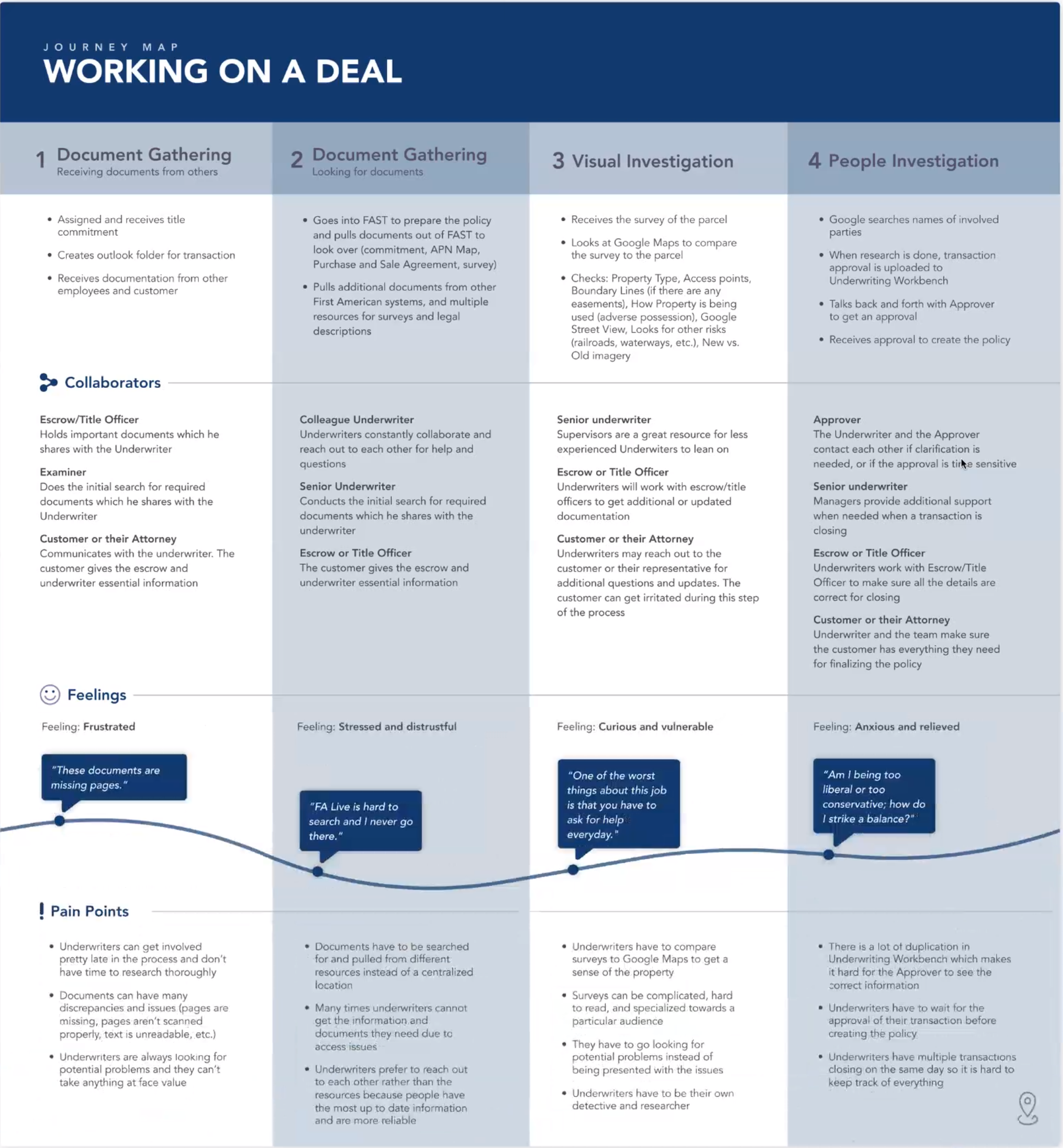 In the kick-off meeting I implemented a process and protocols that allowed me to become a full-fledged product design lead while collaborating with Product Owner, Product Manager, BSA, UI Designer and VP of innovation and seven developers